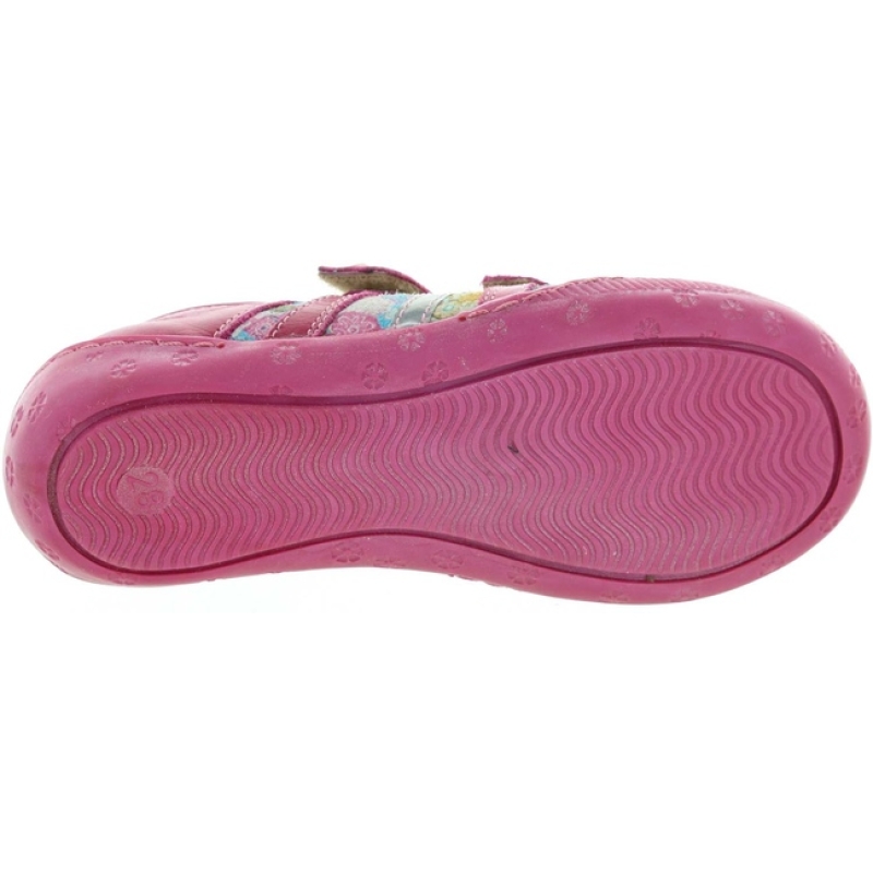 Flexible pink rubber sole.