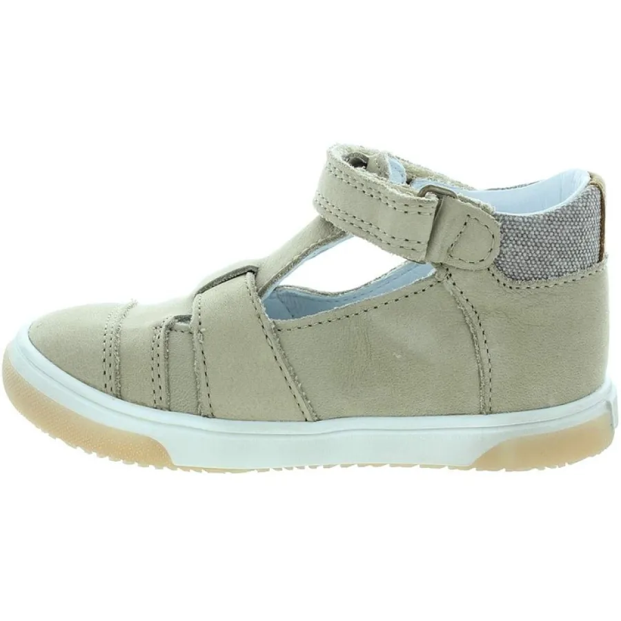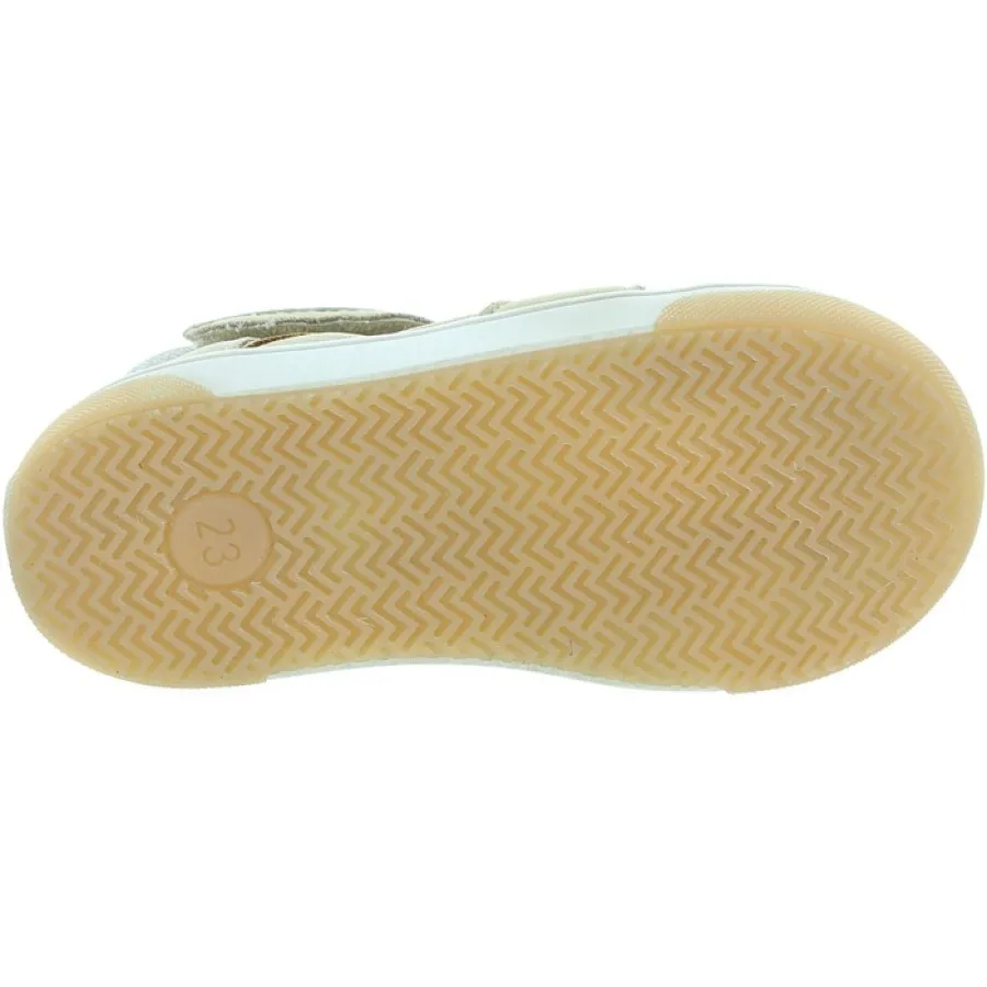 Cool soft walking beige shoe for a child.