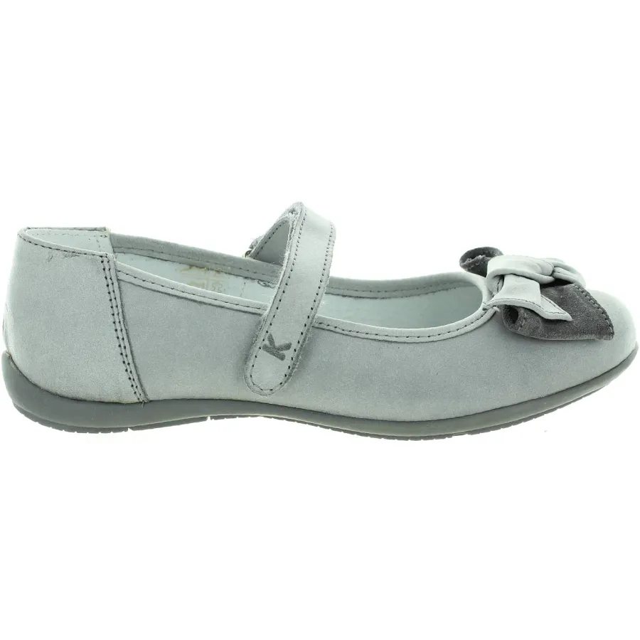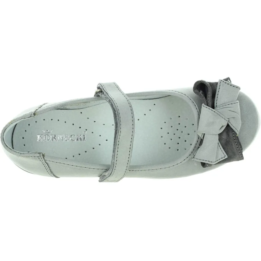 Made out of gray leather decorated with cute bow.