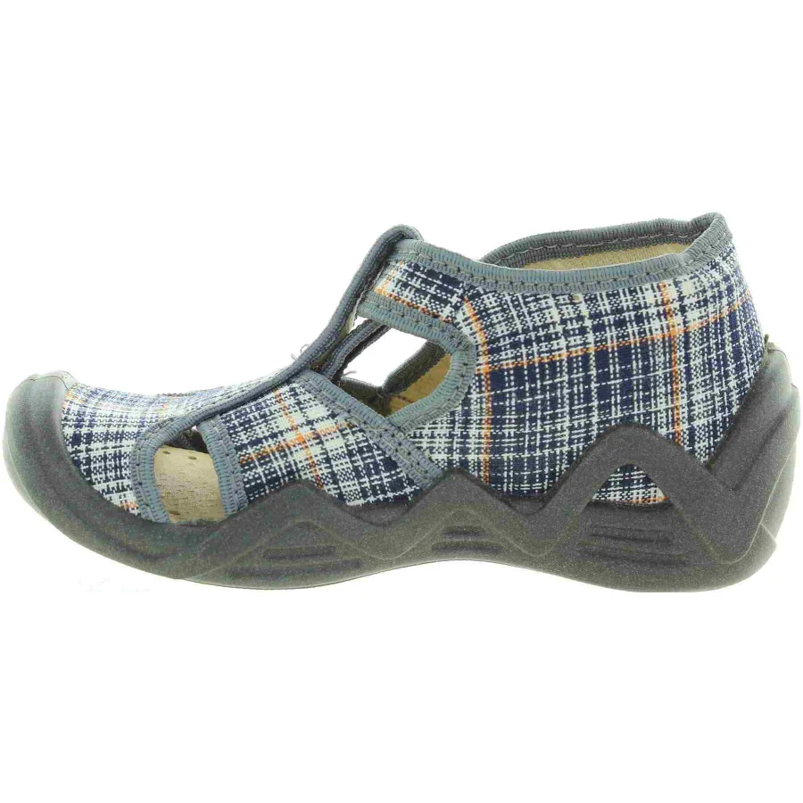 Profiled soles of course since it is an ortho house shoe for boys.