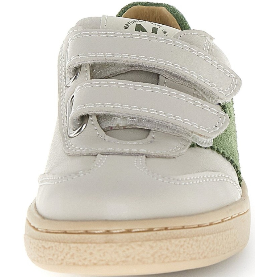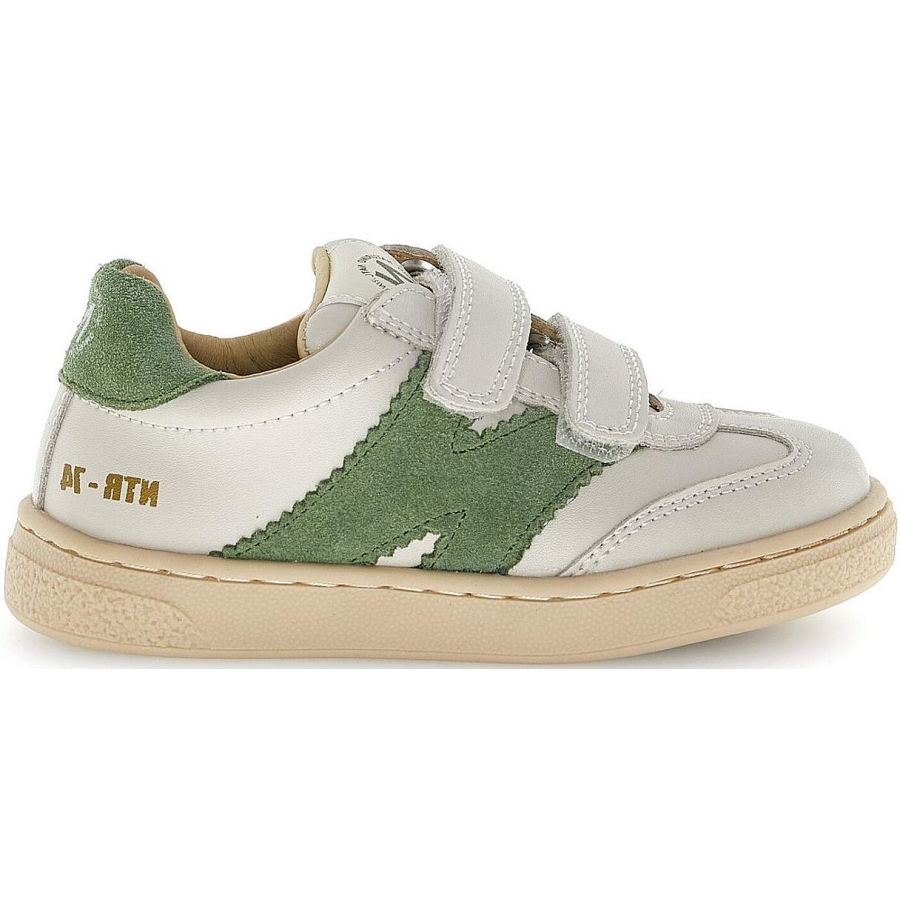 Casual leather sneakers for boys in beige/green leather