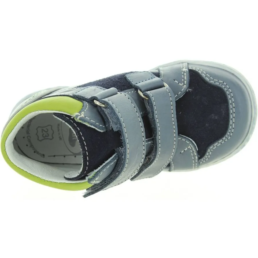 Gray/blue/lime leather.