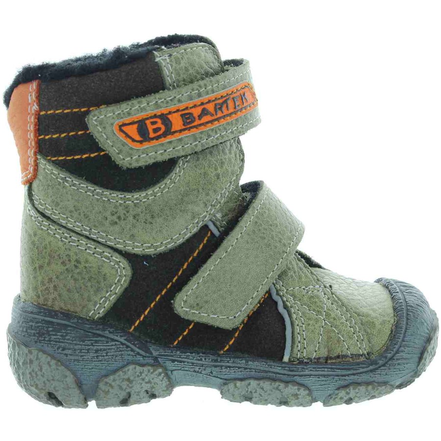 Green leather snow boots for kids