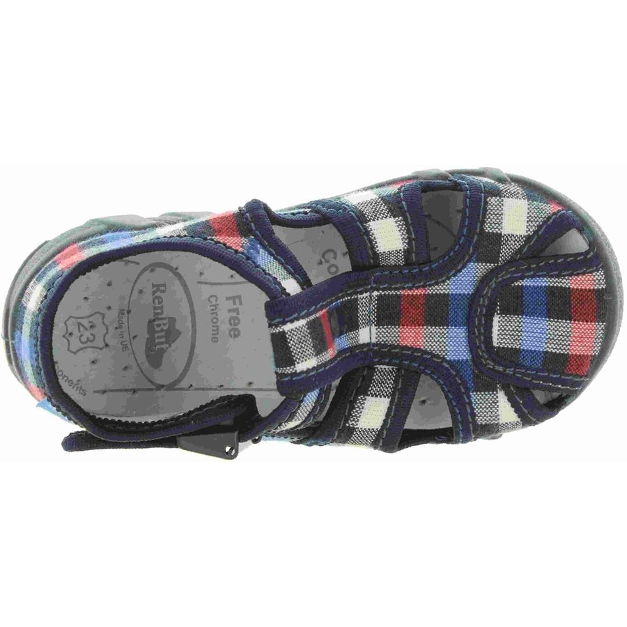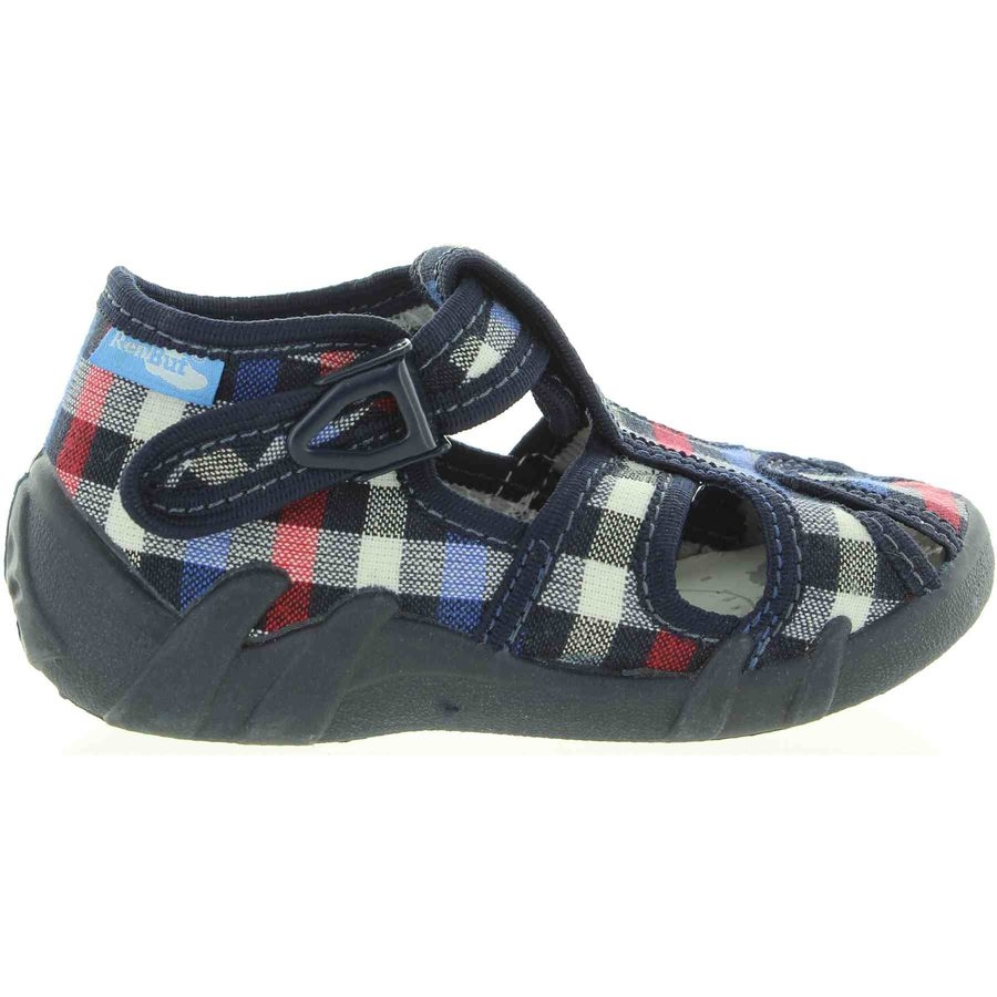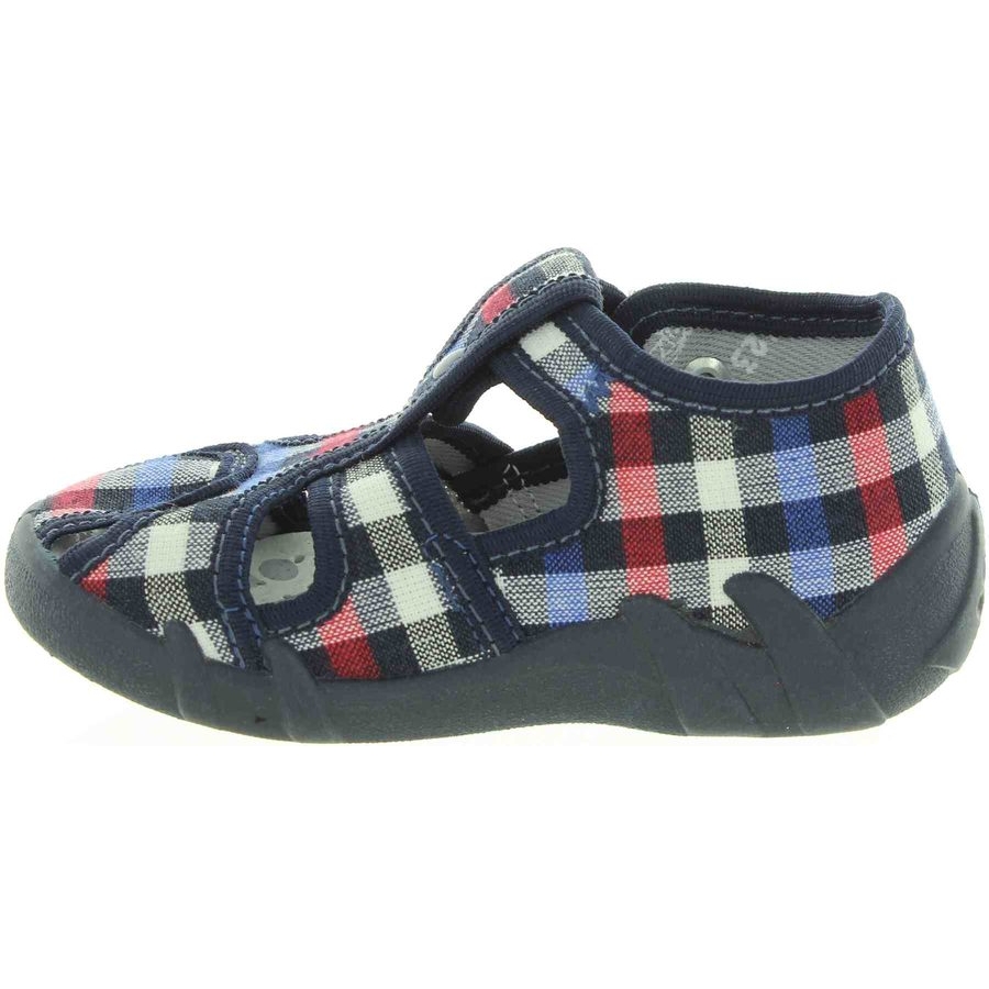Baby canvas house shoes decorative with navy plead.