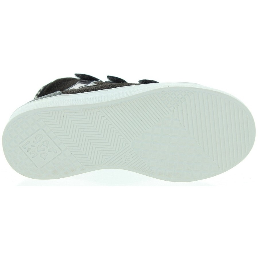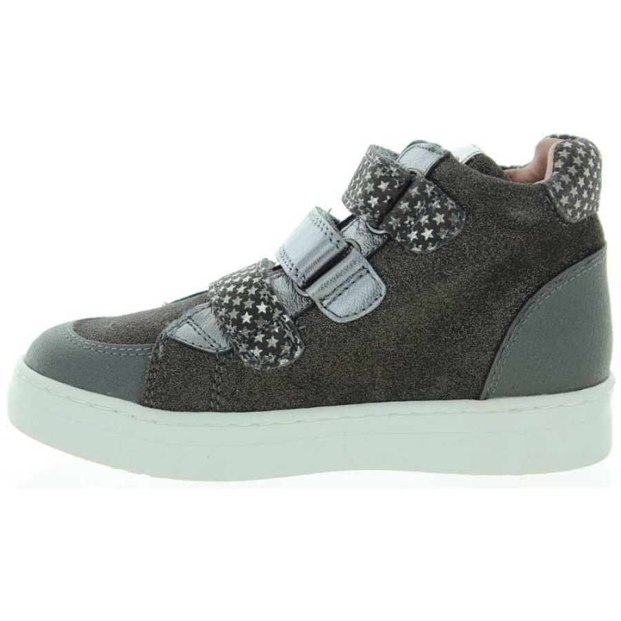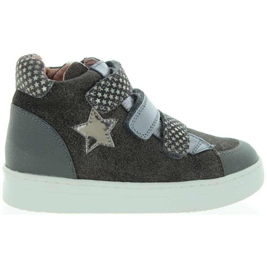 Made out of gray leather and decorated with star.