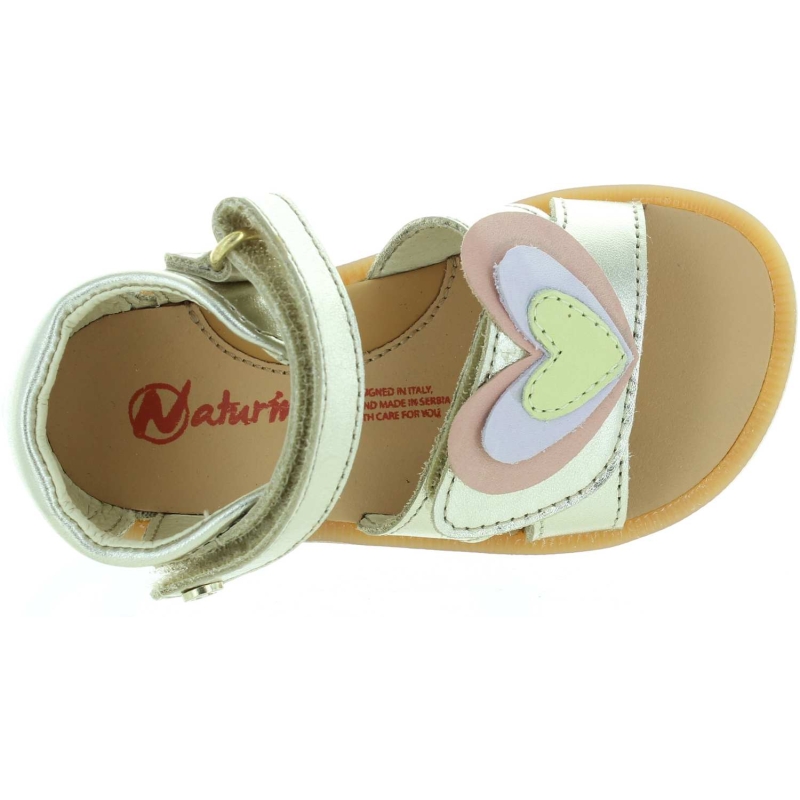 Gold baby sandals decorated with cute heart.