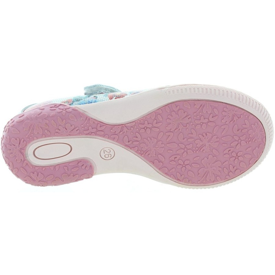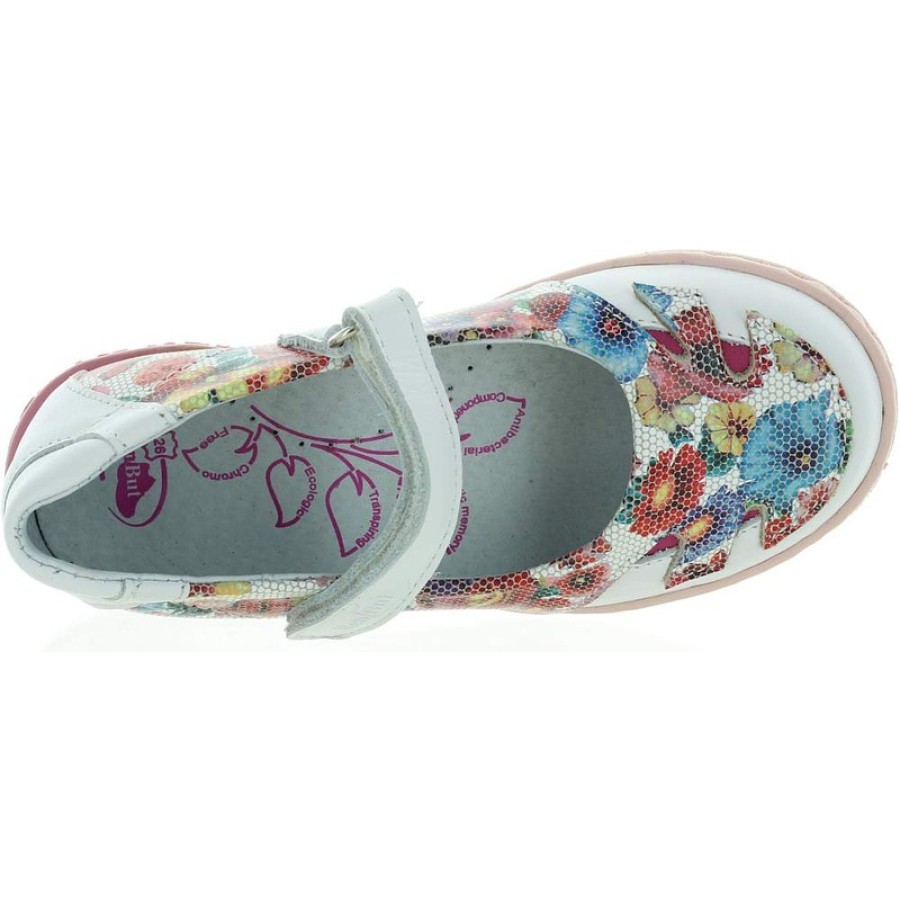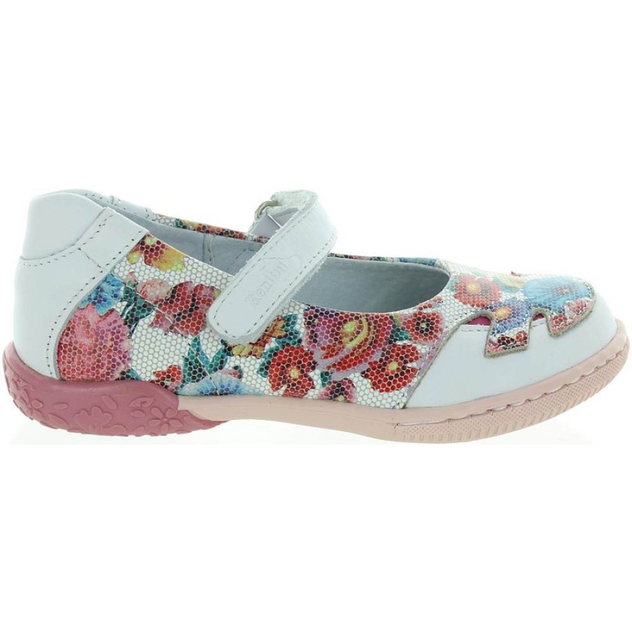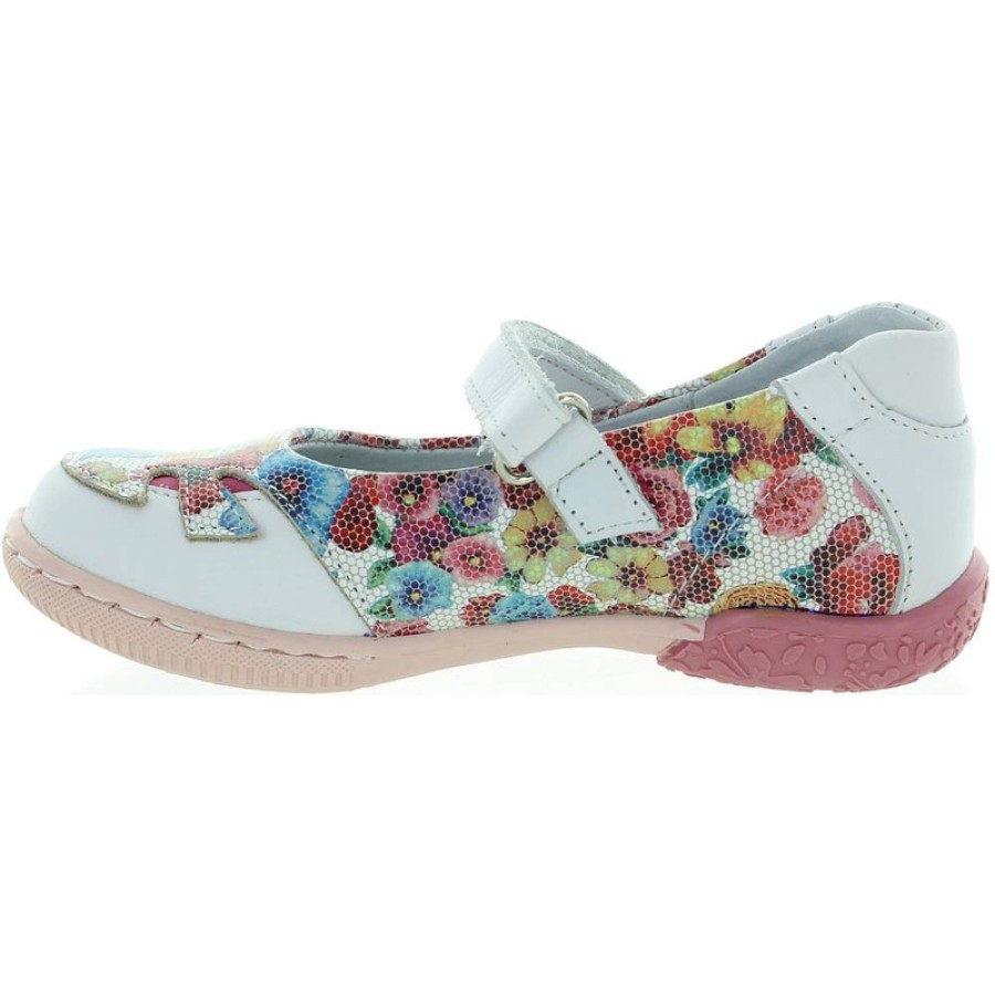 White leather flower print casual shoes for Spring or Summer for a girl.