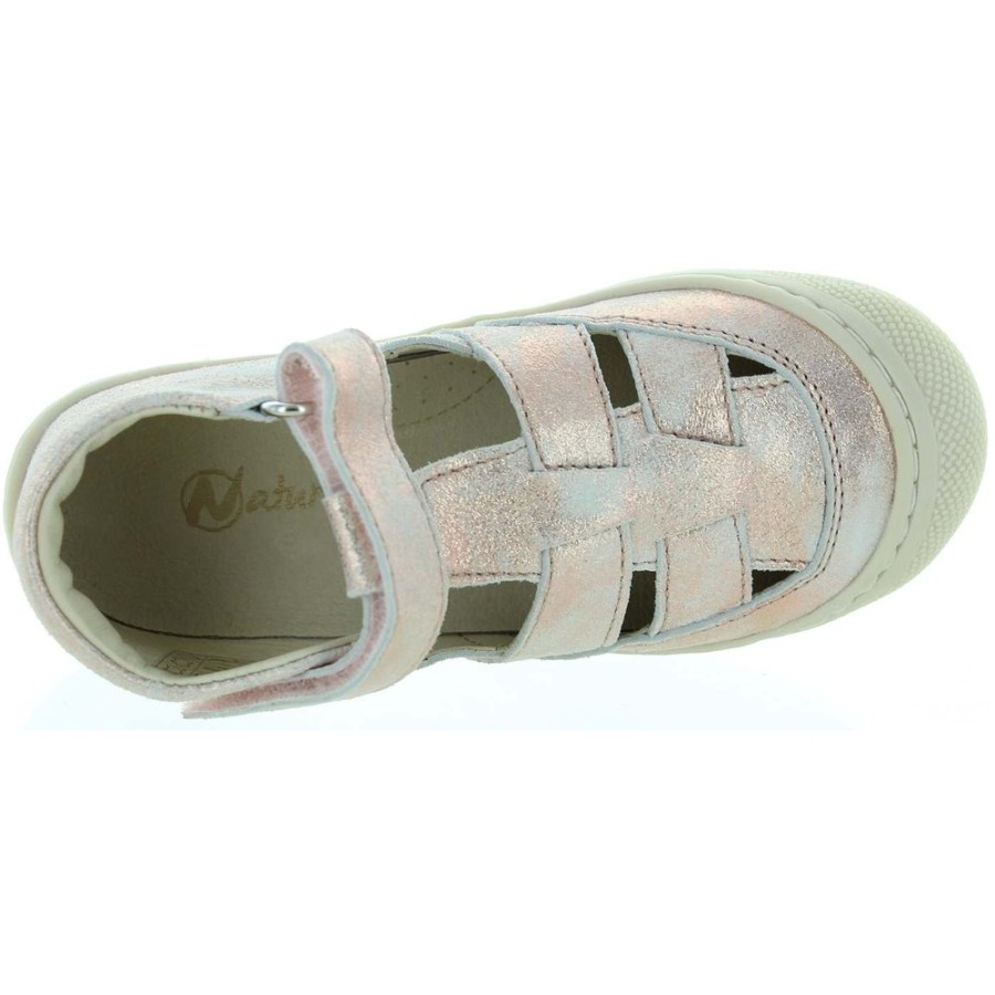 Leather rose metallic sandals for girls