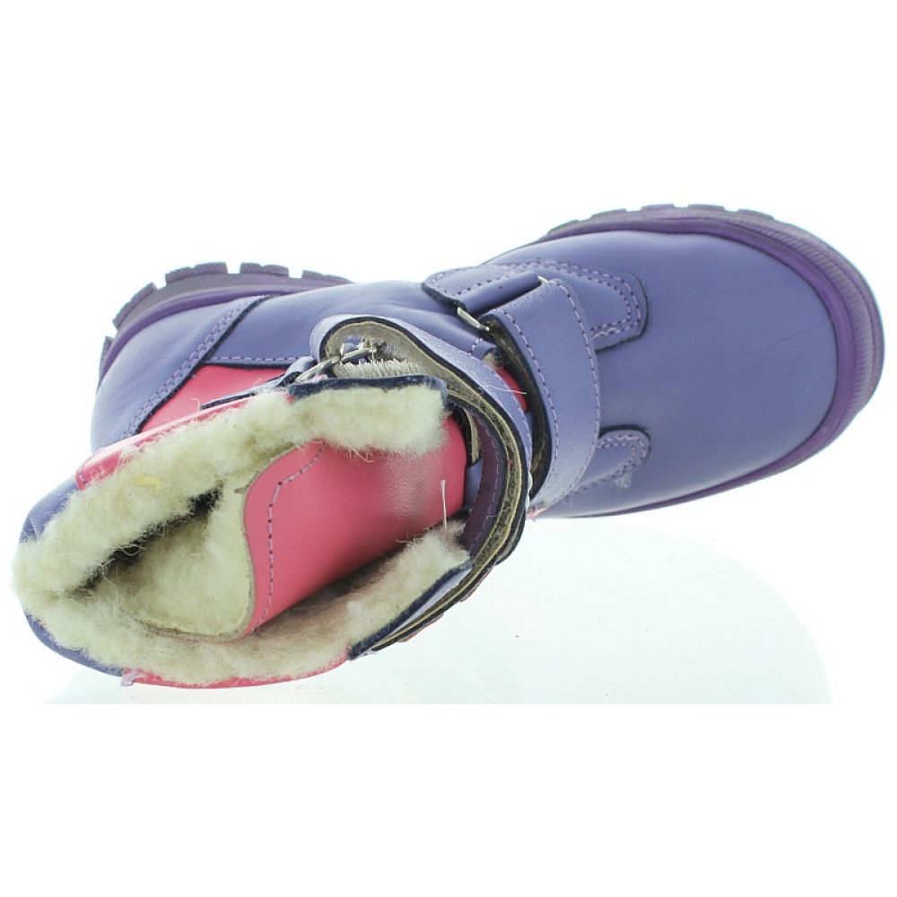 Purple, pink, lavender leather with thick wool and gortex inside.