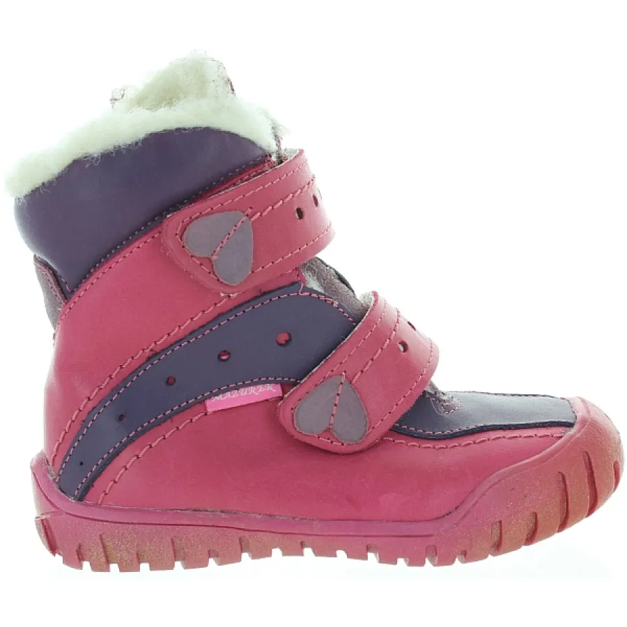 Purple/pink leather waterproof snow boots for girls