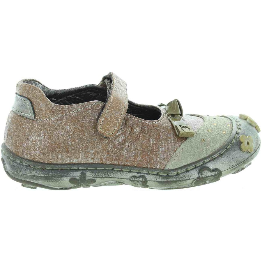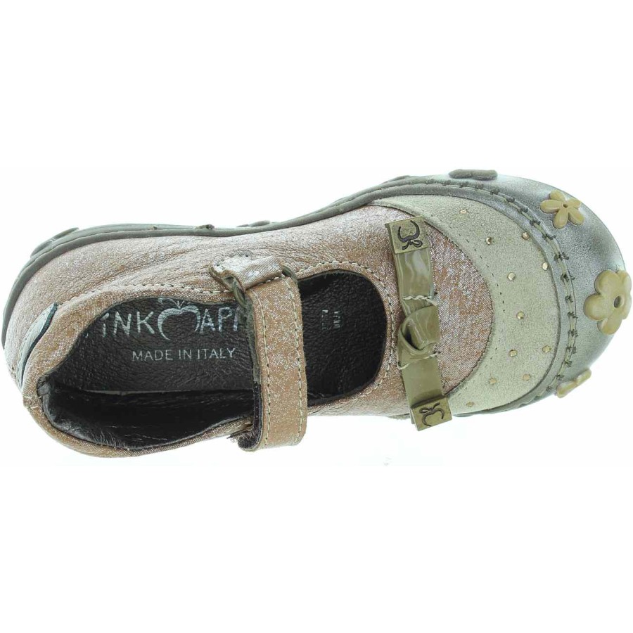 Made out of beige metallic leather for kids