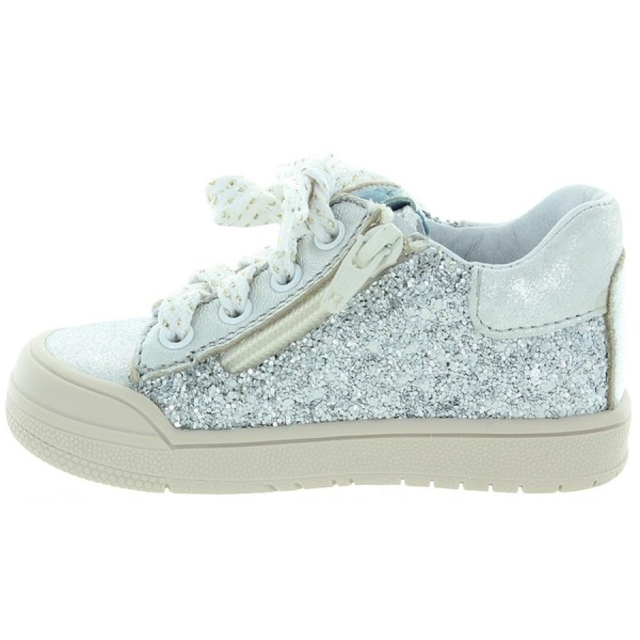 Girls silver sneakers with zipper closure with support