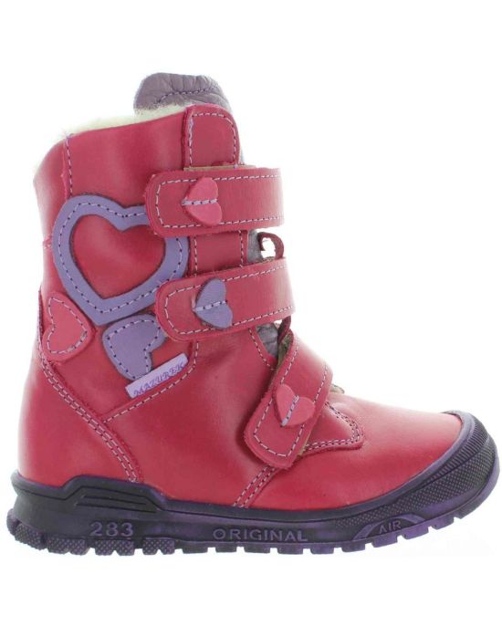 Soft sole with traction red leather girls snow boots for winter