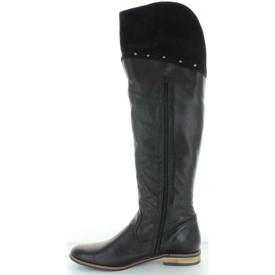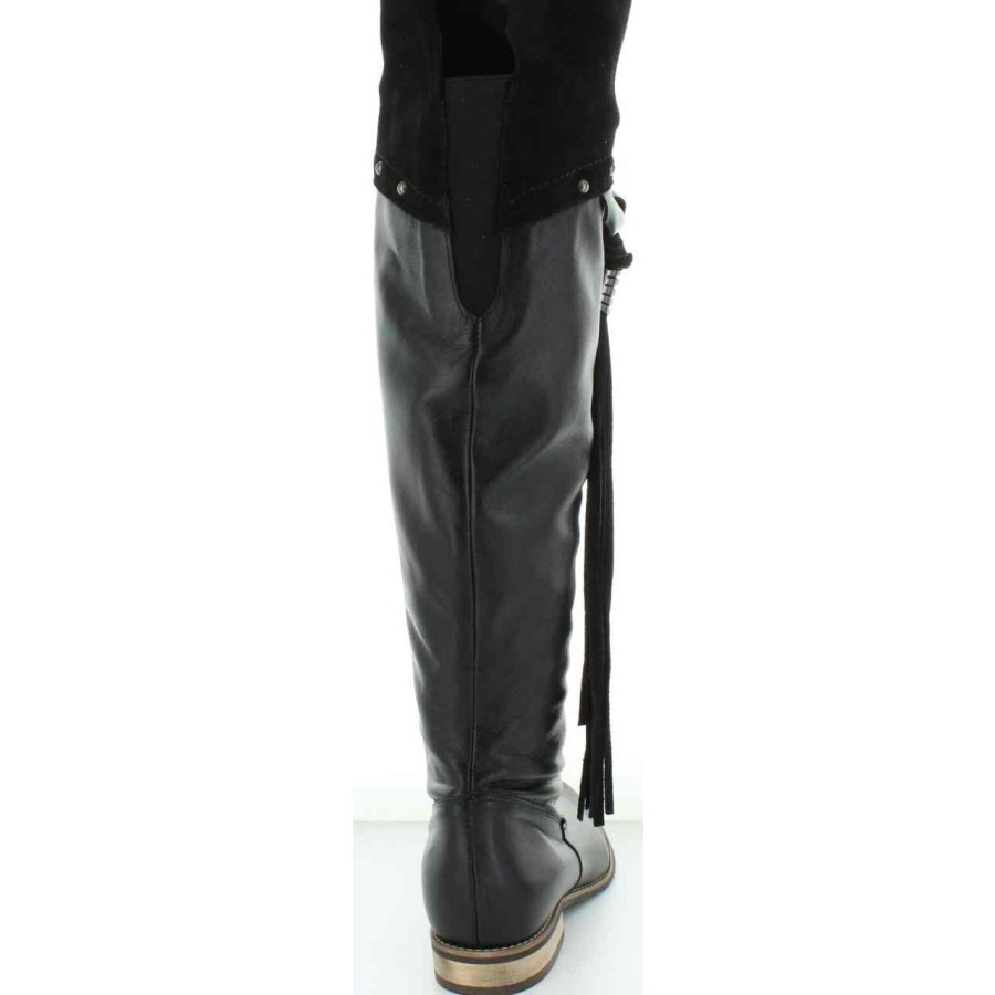 Tall black leather boots that stretch over the knees