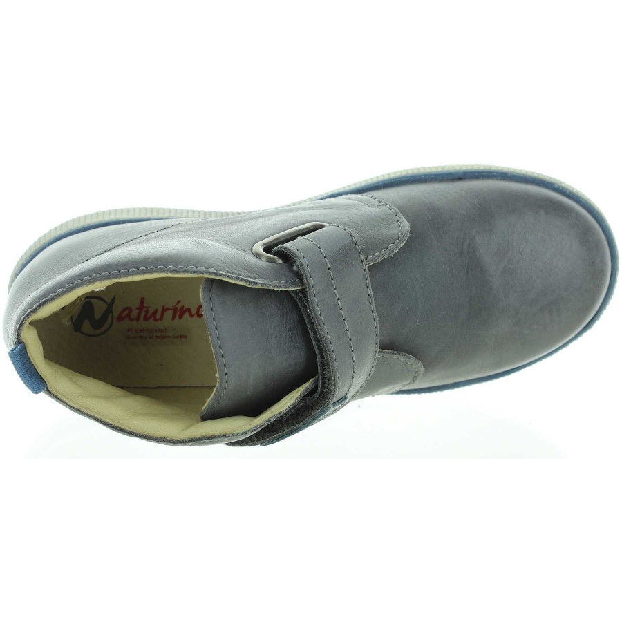 Gray leather side velcro closure.