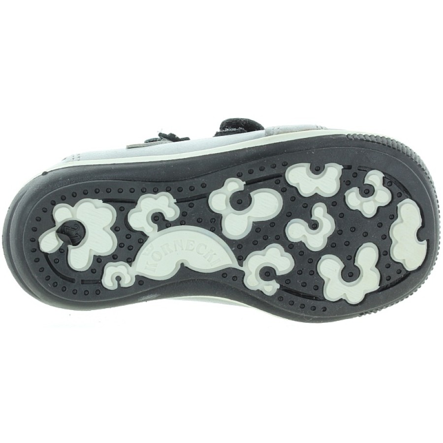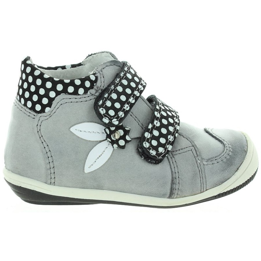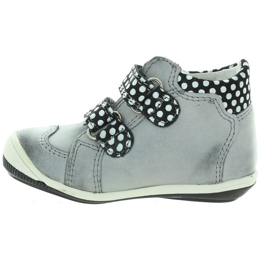 Wide width baby gray leather sturdy ankle boots